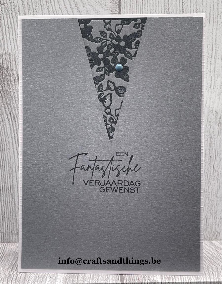 deze stempel is gemonteerd op EZ, klaar voor gebruik op een acrylblok of met een stempelhulp. Ander materialen zijn gebruikt ter illustratie