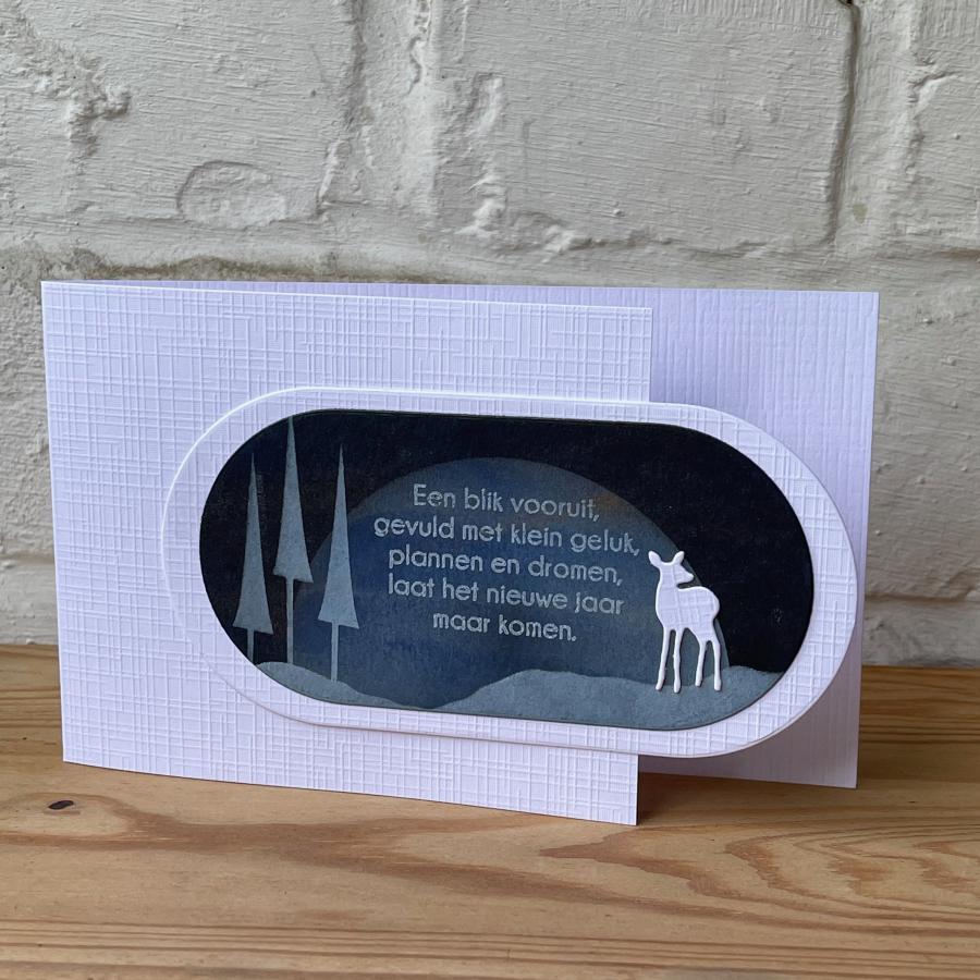 tekststempel - ongemonteerd - deze stempel dient gemonteerd te worden op ez foam om te kunnen gebruikt worden met een stempelhulp of acrylblok. Andere materialen gebruikt in dit project dienen ter illustratie
